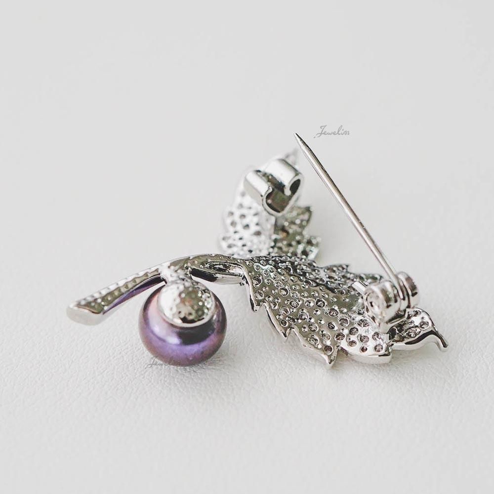 Jeweliss ブラット Blatt 淡水パール リーフ ブローチ ジュエリスは、クリアクリスタルのパヴェが繊細にあしらわれたリーフにパープルの淡水パールをあしらったブローチです。