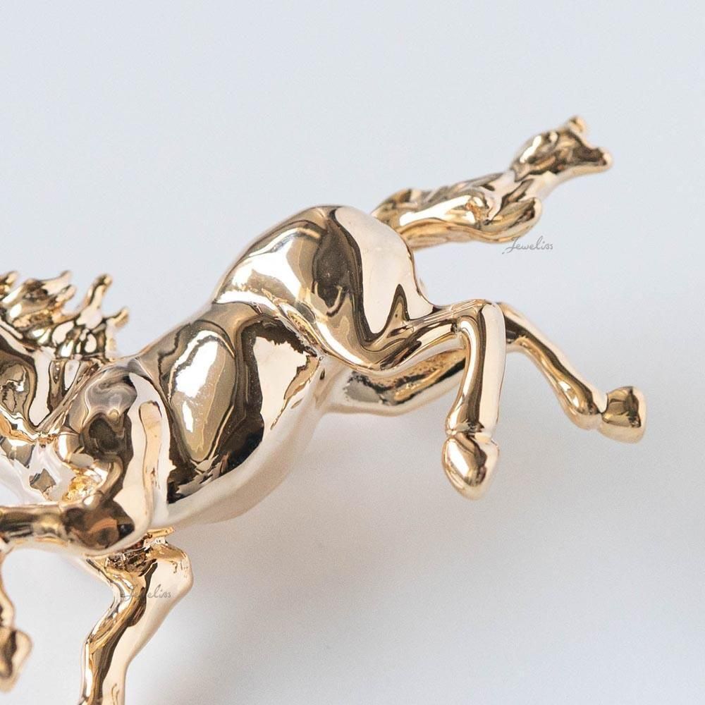 力強くしなやかに走る馬の姿をシンプルながらも洗練された印象に仕上げました。 ゴールドのワントーンのブローチは、コーディートのしやすさも魅力です。