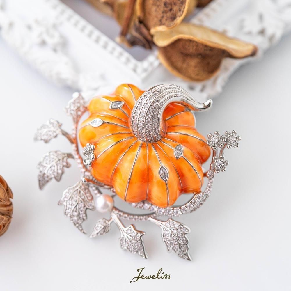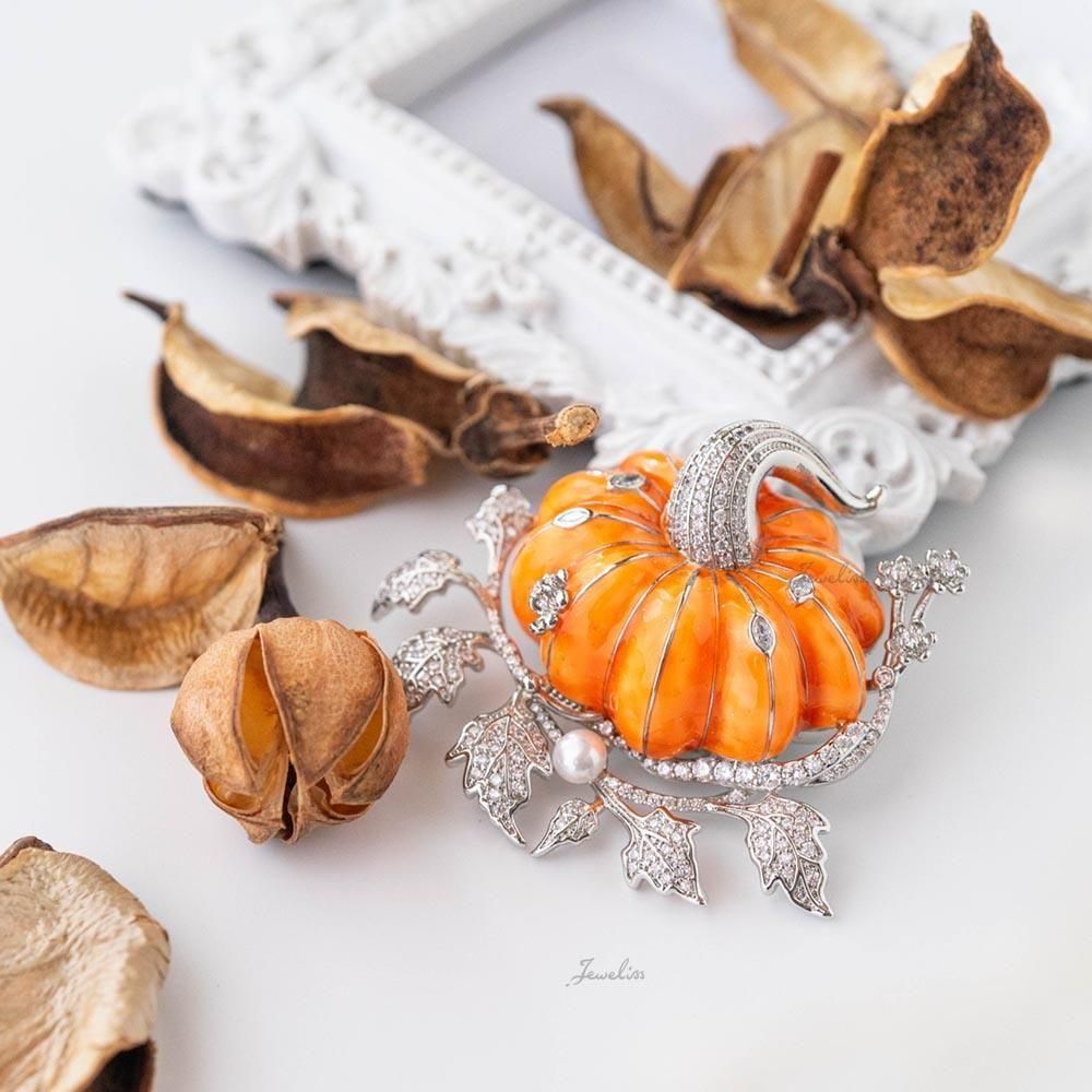 こんなに素敵なカボチャのブローチは初めてです!購入まで悩みましたが、本当に綺麗でハロウィンの時期以外にも沢山使えそうです。