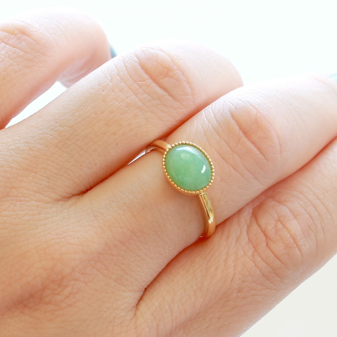 グリーン翡翠は幸福や成功、調和を象徴し、気持ちに安定感をもたらしてくれます。特にカボションカットの翡翠リングは、指を美しく見せる効果があり、淡いグリーンの輝きが手元にやさしさと高級感を添えてくれます。